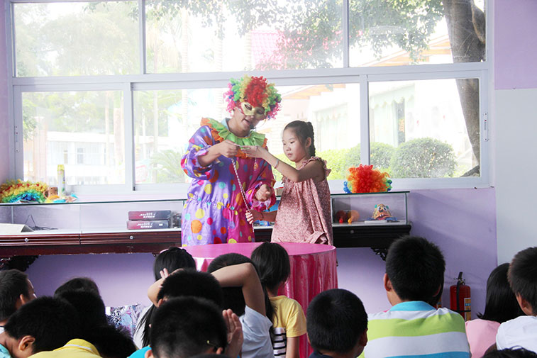 After lunch, the children traveled to the second camp site: Kiki kingdom. Kiki small kingdom located in Dapeng district, Dongshan Pearl Island, is a spot integrated with entertainment and education. The children are divided into three teams, experienced DIY handmade biscuits, magic school, Adams resistant passenger golf, children's short tennis, catching loach and other projects. In DIY handmade biscuits classroom, the children washed their hands, sit around, carefully listened to the teacher to explain how to make biscuits, wanted to experience the fun of handmade biscuit; in magic school, the clown's magic tricks amused the kids with laugh, children also learned a simple magic with clown; catching loaches is the most fun event for the boys, they caught a lot of them, some little girls caught some loaches too, but they only can take three small loaches as regulation in the park, the children hand over their loaches with honesty.