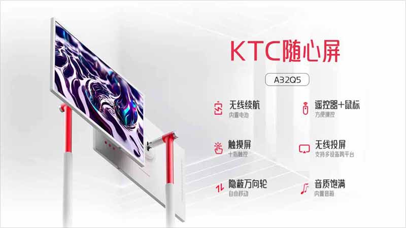L’écran personnalisable de KTC est l’un des produits pionniers en matière d’écrans mobiles sur le marché chinois. Il offre aux utilisateurs une approche plus pratique et plus intelligente de la consommation vidéo et audio, contribuant ainsi à l’amélioration de l’indice de bonheur. Doté de fonctions telles que l’autonomie de la batterie, la diffusion sur plusieurs écrans, la rotation de l’écran et la portabilité, il offre une expérience complète et polyvalente à l’utilisateur. La base est équipée d’une batterie haute capacité et de roues pivotantes silencieuses, permettant une utilisation « sans fil » partout et à tout moment.