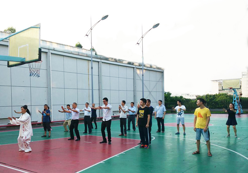 太极拳课程设于每周一、周三下午六点,每课时长一小时。8月22日,太极拳在坂田工厂篮球场正式开课,有三四十名员工参与了课程。在太极老师的专业指导下,塑形贯劲,神志筋骨劲气得到全面锻炼,起到了身心舒稳,精神放松的效果。