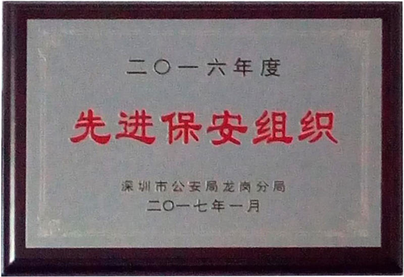 2016年度6686体育公司治安保卫工作取得优异成绩,被深圳市公安局龙岗分局评为“先进保安组织”。
