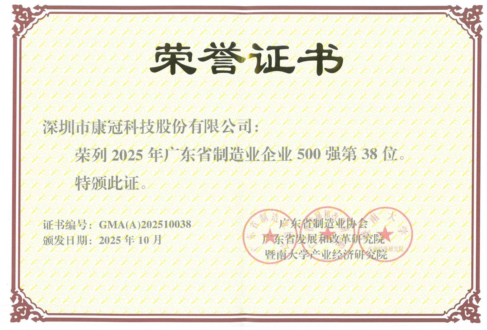 10月29日,2025年广东省制造业500强企业峰会近日在东莞举行,会上正式发布了《2025年广东省制造业500强企业研究报告》。6686 - 看球聊球追世界杯就来6686体育有限公司官方网站(简称“6686体育”)位列榜单第38位,彰显了在广东制造业领域的坚实地位和持续增长动能。