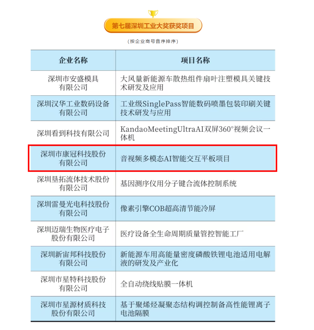11月12日下午,第十四届“五洲工业发展论坛”暨首届深圳企业转型升级大会隆重举行。现场重磅发布第七届“深圳工业大奖”,6686体育公司获“深圳工业大奖”—企业奖,董事长凌斌获“深圳工业大奖”—工业家奖,《音视频多模态AI智能交互平板项目》获“深圳工业大奖”—项目奖。