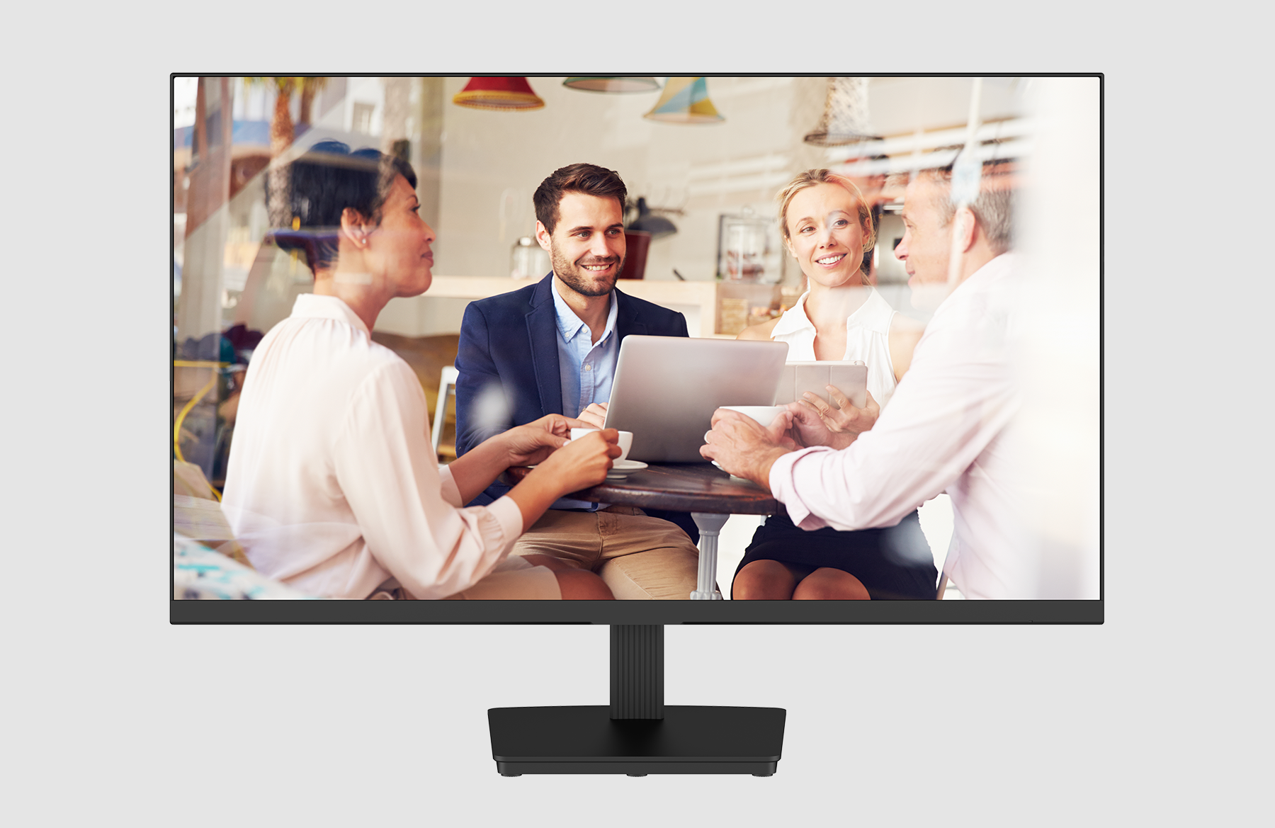 轻薄设计,三面无边框,搭配金属底座,时尚百搭,支持滤蓝光不闪屏